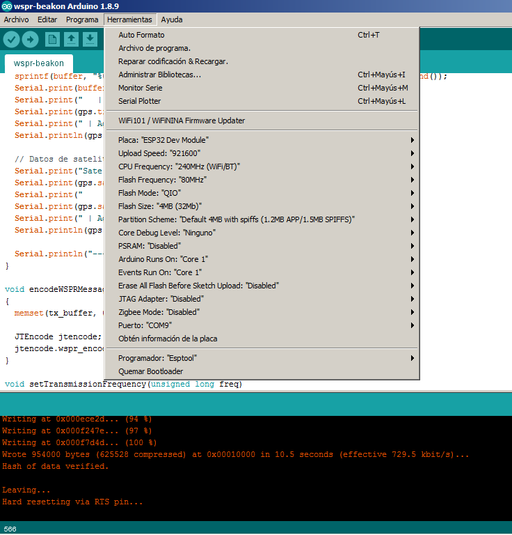 wspr-beakon.inoin Arduino IDE - Configure the required parameters (see Configuration section below)